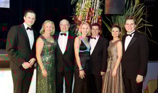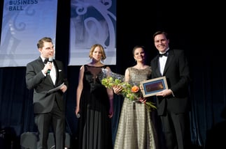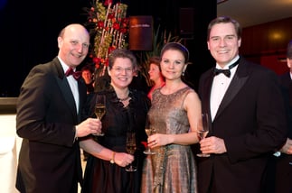 Markus Presle und Alexandra Germs, die neuen Ballobleute des 12. BBB, überreichten Petra und Christoph Kaufmann die "Goldene Ehrenkarte" des Business Balls. Der Landtagsabgeordnete und seine Frau organisieren seit 2006 den Ball tatkräftig mit.